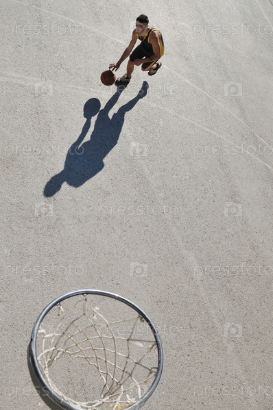 Молодой человек играет в баскетбол