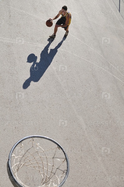 Молодой человек играет в баскетбол