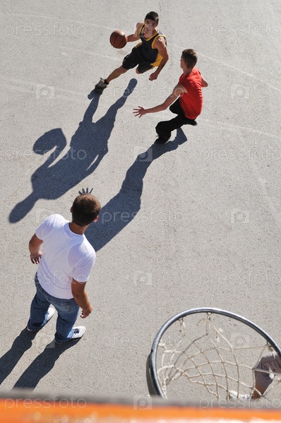 Молодые люди играют в баскетбол