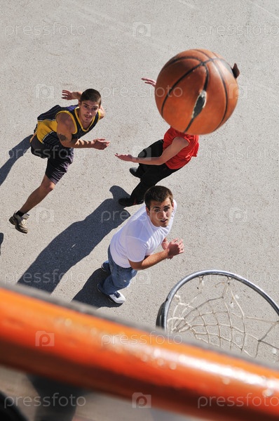 Молодые люди играют в баскетбол