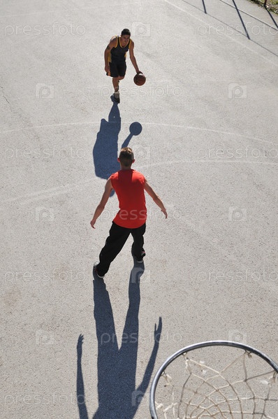 Молодые люди играют в баскетбол