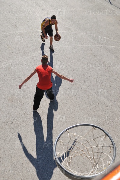 Молодые люди играют в баскетбол