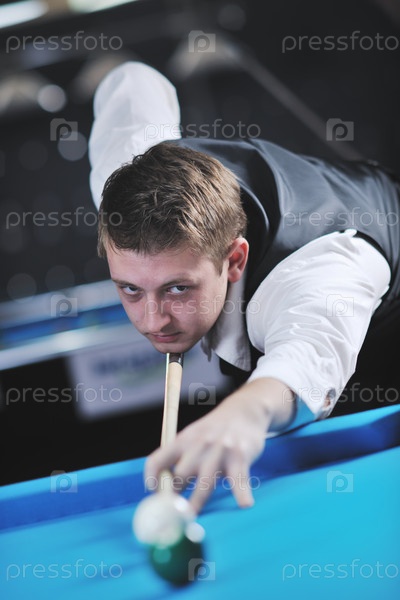 Молодой мужчина играет в бильярд