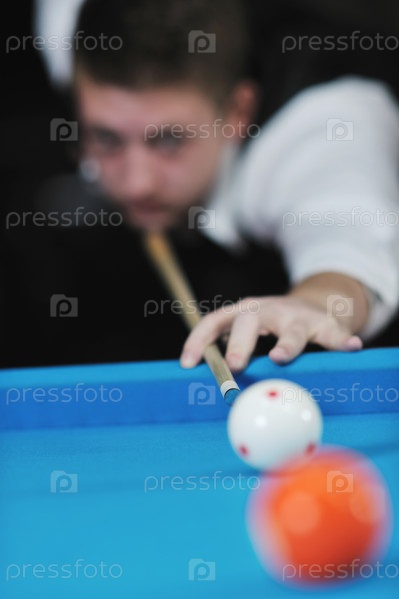 Молодой мужчина играет в бильярд