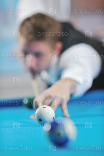 Молодой мужчина играет в бильярд