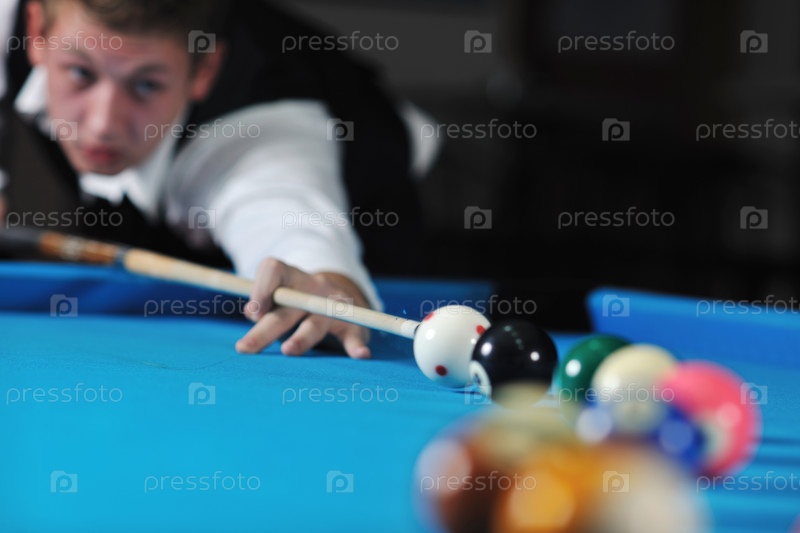 Молодой человек играет в бильярд