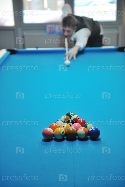Молодой человек играет в бильярд