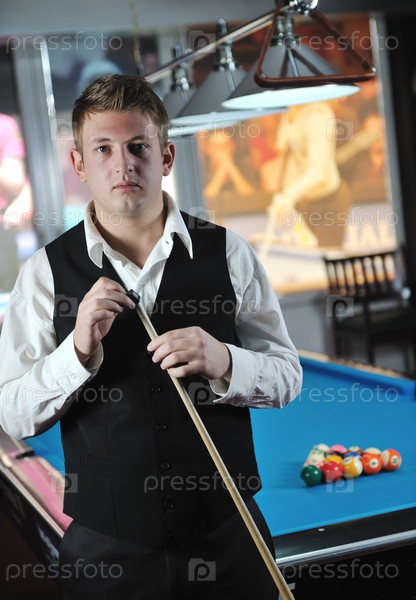 Молодой человек с кием в руках