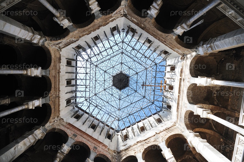 Интерьер здания в восточном стиле со стеклянной крышей
