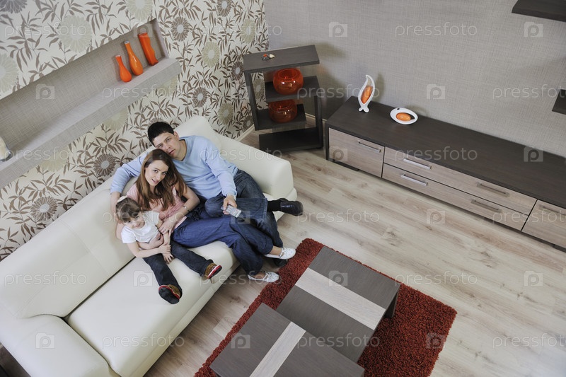 Счастливая семья в современной гостиной