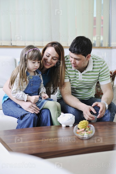 Молодая счастливая семья в гостиной