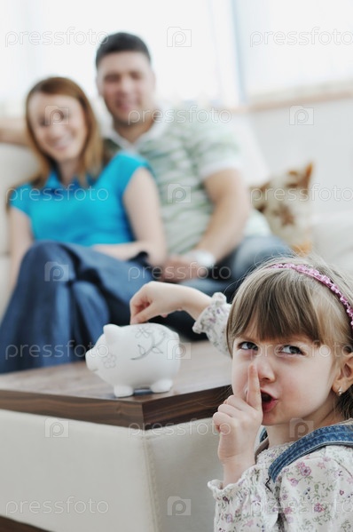 Молодая счастливая семья в гостиной