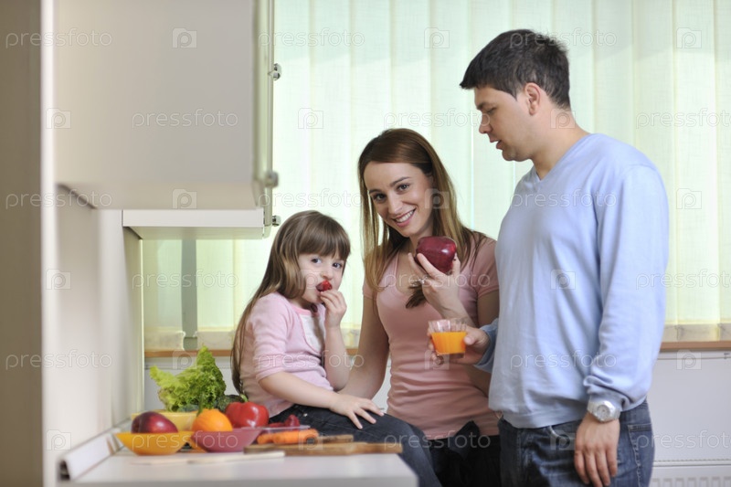 Счастливая молодая семья на кухне