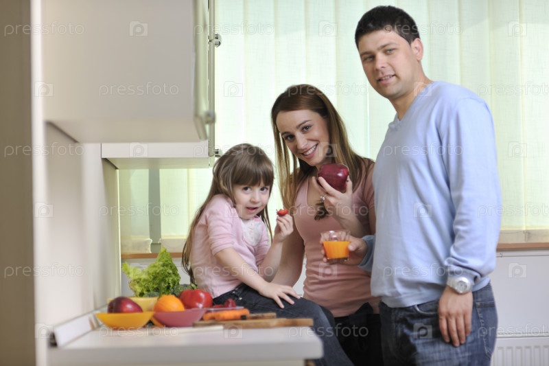 Счастливая молодая семья на кухне
