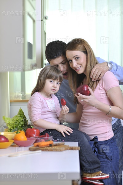 Счастливая молодая семья на кухне