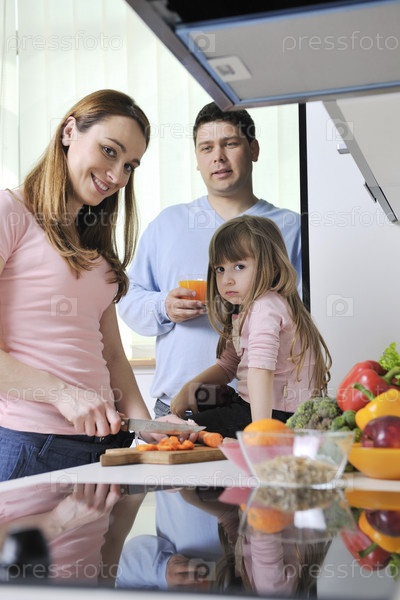 Счастливая молодая семья на кухне
