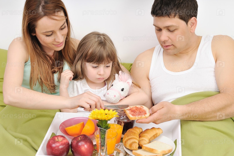 Молодая семья за завтраком