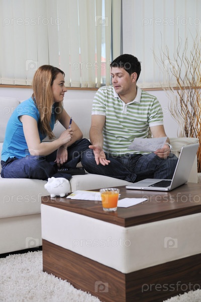 Молодая пара, сидящая на диване