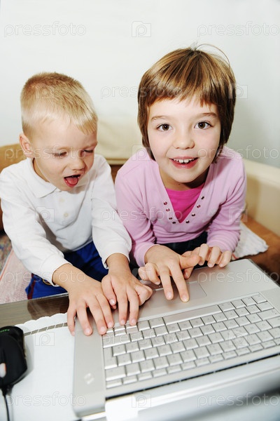 Маленькие дети, играющие на ноутбуке
