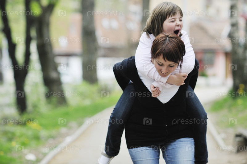 Счастливые мать с дочерью на прогулке на открытом воздухе