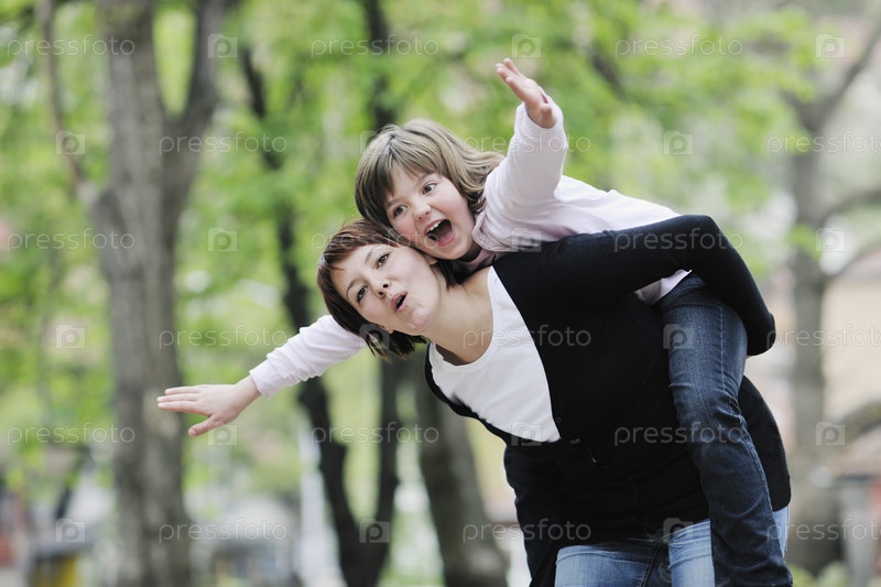 Счастливые мать с дочерью на прогулке на открытом воздухе