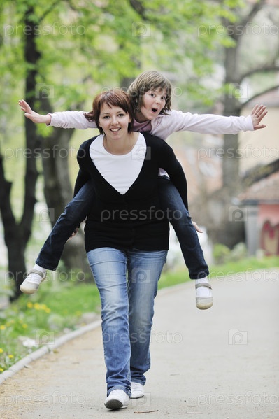 Счастливые мать с дочерью на прогулке на открытом воздухе