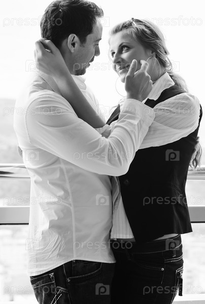 Романтическая молодая пара, черно-белое фото