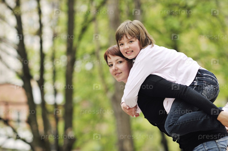Молодая мать с дочерью отдыхают в парке
