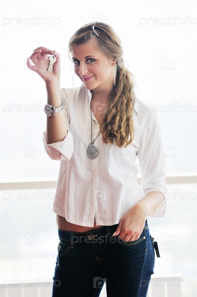 Молодая женщина с ключом в руке