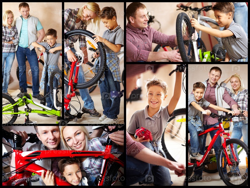 Молодая семья в гараже, коллаж