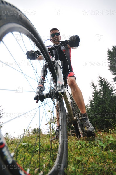 Мужчина на велосипеде на природе