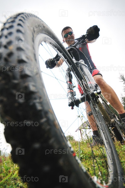 Мужчина на велосипеде на природе