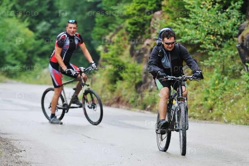 Двое друзей на велосипедах на природе