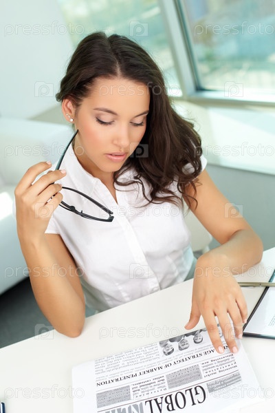 Деловая женщина читает газету