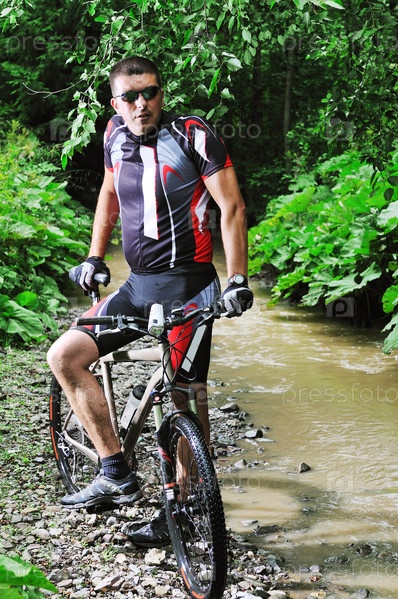 Велосипедист едет по воде