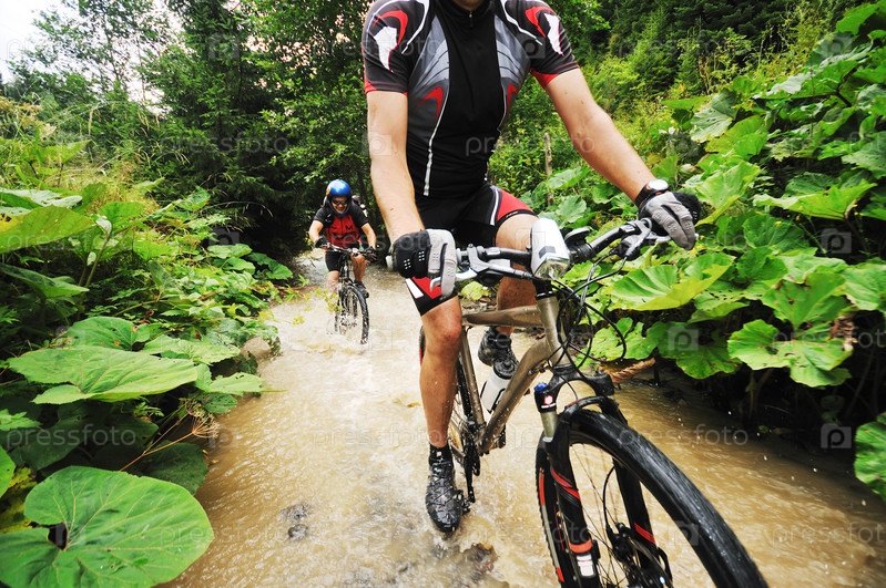 Велосипедист едет по воде