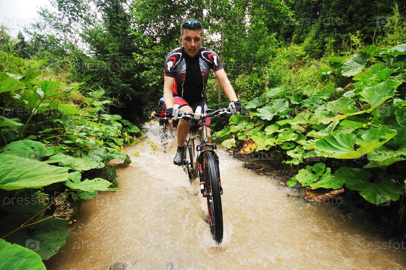 Велосипедист едет по воде