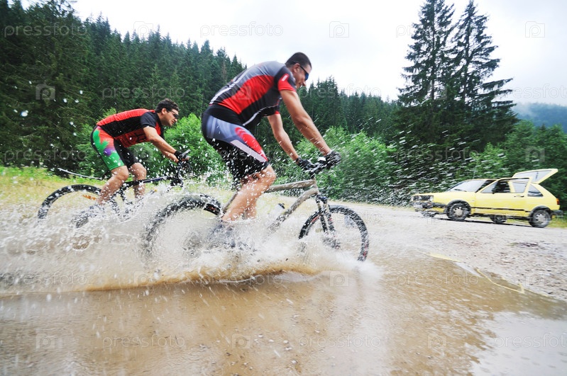 Велосипедисты едут по воде