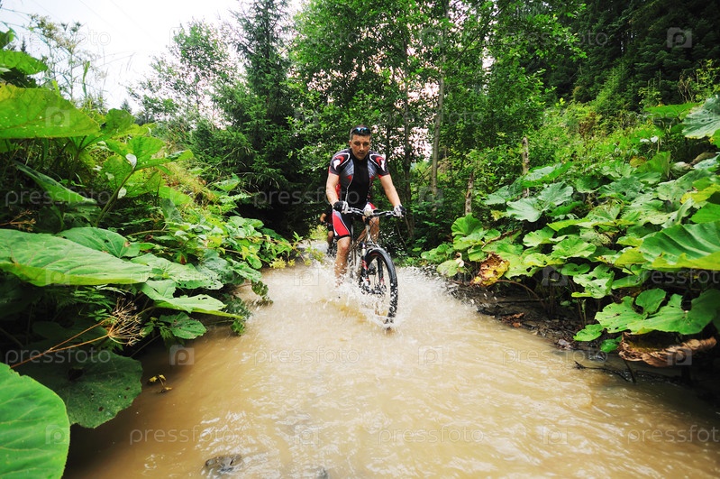 Велосипедист едет по воде