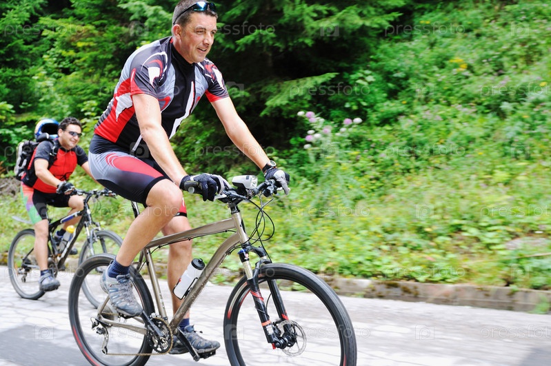 Двое друзей на велосипедах на природе