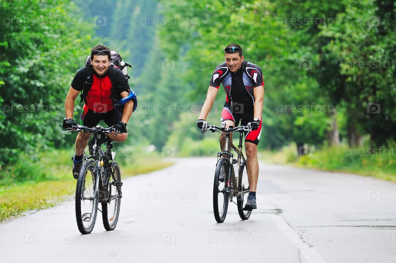 Двое друзей на велосипедах на природе