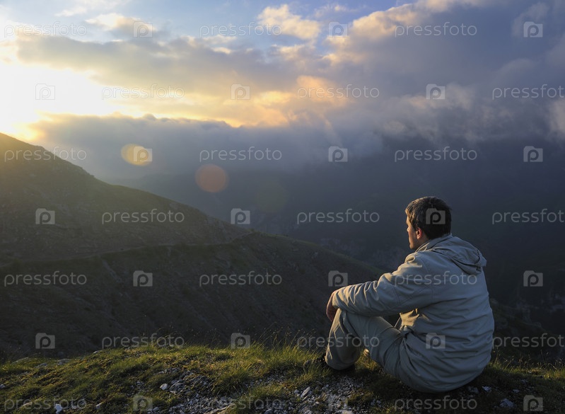Здоровый мужчина занимается йогой ранним утром на вершине горы