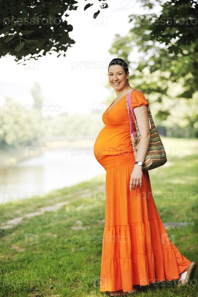 Счастливая беременная женщина в парке