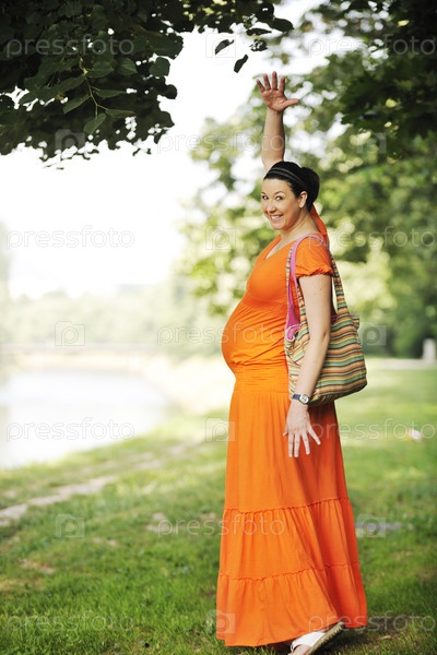 Счастливая беременная женщина в парке