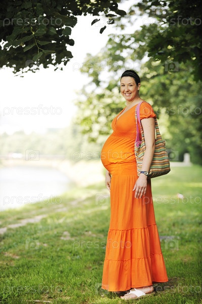 Счастливая беременная женщина в парке