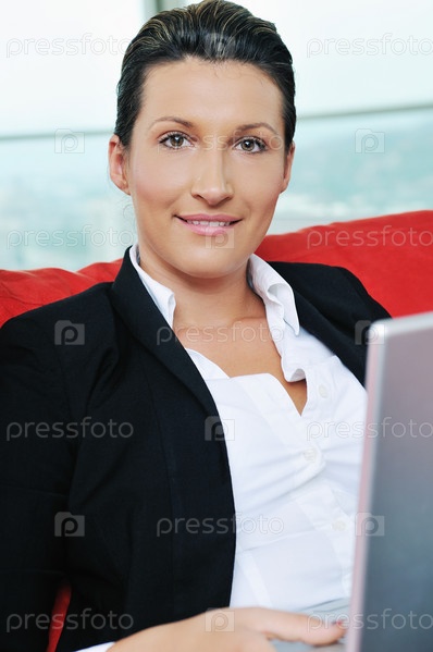 Молодая деловая женщина работает на ноутбуке в домашней обстановке