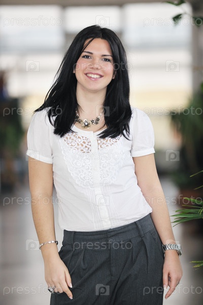 Молодая счастливая модная деловая женщина в помещении