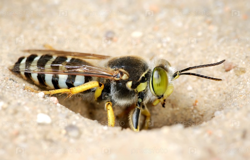 Пчела роет ямку в песке