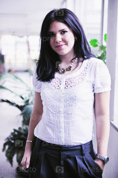 Молодая счастливая модная деловая женщина в помещении