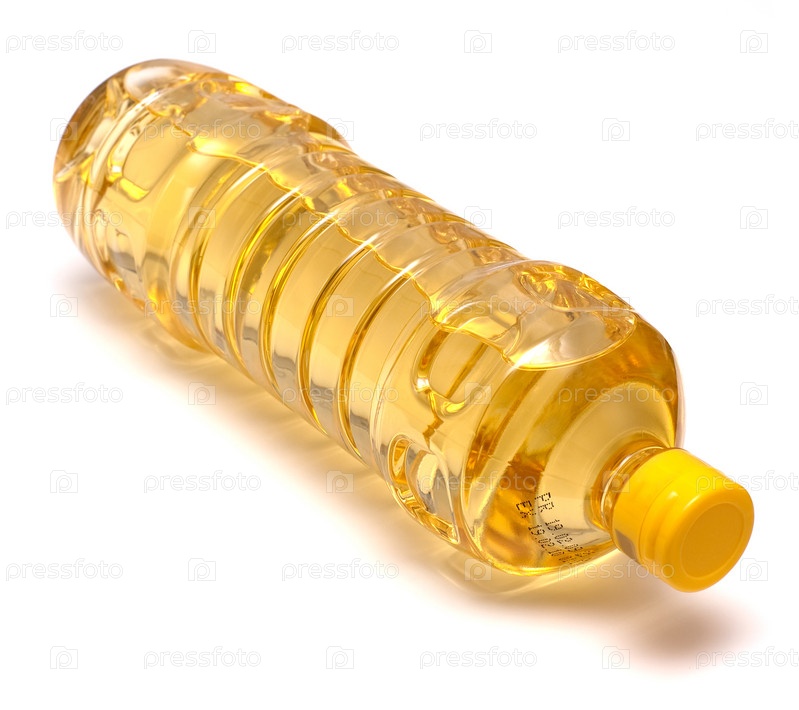 Бутылка подсолнечного масла на белом фоне